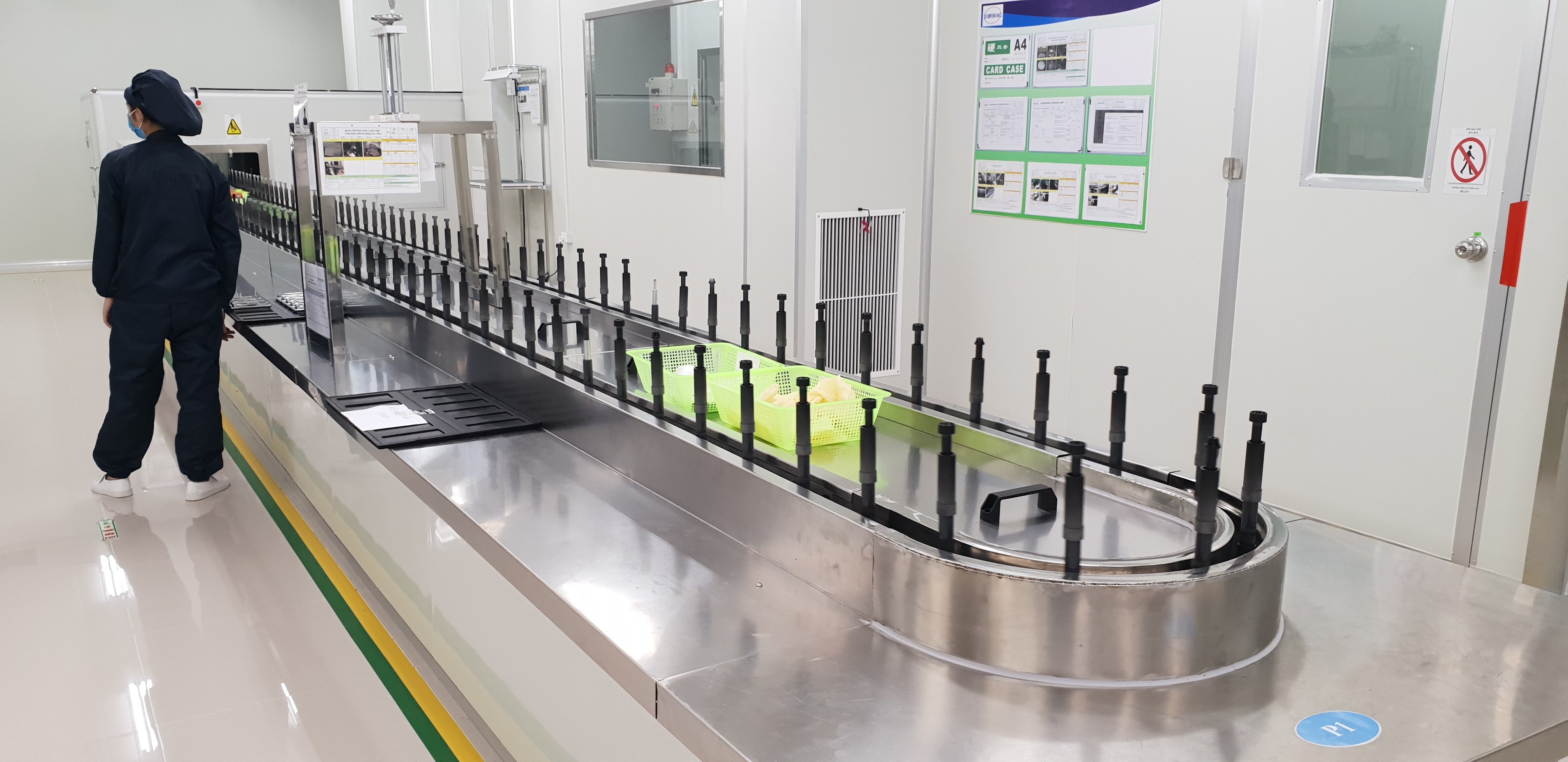 제품을 투입하고 취출 하는 곳으로 작업자들 운집장소로써 장시간 반복 작업 중 피로도를 최소화시켜 작업을 용이하도록 설계 되어야 함.